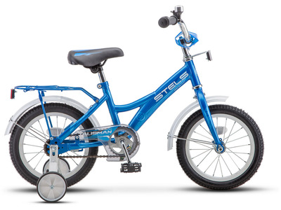 Велосипед, предназначенный для детей в возрасте от двух до четырех лет, без переключения передач. Технические особенности: прочная стальная рама, жесткая вилка, одинарные обода, передний тормоз - ручной, задний - ножной, съёмные боковые колёса, защита цепи, стальные крылья, защита цепи, мягкие накладки на руле, звонок. Подходит для обучения и легких прогулок. Диаметр колес - 14 дюймов. Вес - 9,8 кг.