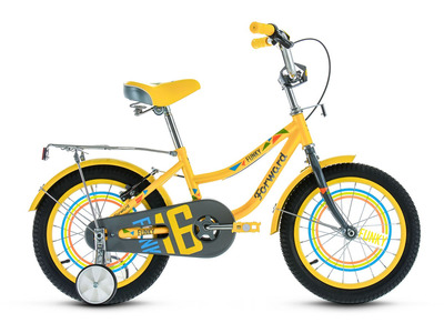 Велосипед, предназначенный для детей в возрасте от трех до шести лет, без переключения передач. Технические особенности: стальная рама Hi-Ten, жесткая стальная вилка, одинарные обода FWD Single Wall, ножные педальные тормоза, полная защита цепи, съемные боковые колеса, стальные крылья, багажник, звонок. Подходит для обучения и прогулочного катания в городских условиях. Диаметр колес - 16 дюймов. Вес - 11 кг.
