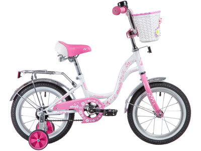 Велосипед, предназначенный для девочек в возрасте от двух до четырех лет, без переключения передач. Технические особенности: стальная рама Hi-Ten, жесткая стальная вилка, одинарные обода, ножные педальные тормоза, защита цепи, съемные боковые колеса, стальные крылья, мягкая накладка на руле, звонок. Подходит для обучения и прогулочного катания в городских условиях. Диаметр колес - 14 дюймов. Вес - 10,5 кг.