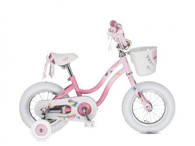 Велосипед, предназначенный для девочек в возрасте от полутора до трех лет, без переключения передач. Технические особенности: алюминиевая рама AL-6061, жесткая стальная вилка Stark Rigid, одинарные обода, ножные педальные тормоза, съемные боковые колеса, передняя корзинка, крылья, защита цепи, мягкая накладка на руле, отражатели, звонок. Подходит для обучения и легких прогулок. Диаметр колес - 12 дюймов. Вес - 9,7 кг.