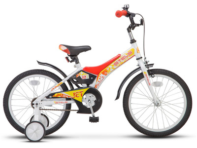 Велосипед, предназначенный для детей в возрасте от четырех до восьми лет, без переключения передач. Технические особенности: прочная стальная рама, жесткая стальная вилка, одинарные алюминиевые обода, ножные педальные тормоза, защита цепи, крылья, съемные боковые колеса, мягкая накладка на руле, звонок. Подходит для обучения и прогулочного катания в городских условиях. Диаметр колес - 18 дюймов. Вес - 10,5 кг.