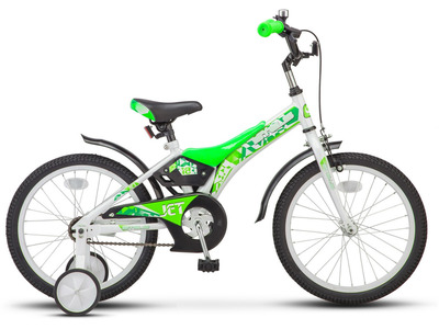 Велосипед, предназначенный для детей в возрасте от четырех до восьми лет, без переключения передач. Технические особенности: стальная рама Hi-Ten, жесткая стальная вилка, одинарные обода, ножные педальные тормоза, полная защита цепи, съемные боковые колеса, длинные крылья, мягкая накладка на руле, багажник, звонок. Подходит для обучения и прогулочного катания в городских условиях. Диаметр колес - 18 дюймов. Вес - 11 кг.