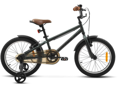 Велосипед, предназначенный для детей в возрасте от трех до шести лет, без переключения передач. Технические особенности: легкая рама из магниевого сплава, жесткая стальная вилка, одинарные стальные обода, передний клещевой тормоз U-типа + задний барабанный, съемные боковые колеса, полная защита цепи, пластиковые крылья, звонок, катафоты. Подходит для обучения и прогулочного катания в городских условиях. Диаметр колес - 16 дюймов. Вес - 9,1 кг.