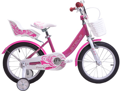 Велосипед, предназначенный для девочек в возрасте от трех до шести лет, без переключения передач. Технические особенности: прочная стальная рама, жесткая стальная вилка, одинарные стальные обода (под AV ниппель), ободные тормоза клещевого типа U-типа, полная защита цепи, длинные крылья, съемные боковые колеса, сиденье для куклы, передняя корзинка, звонок. Подходит для обучения и прогулочного катания в городских условиях. Диаметр колес - 16 дюймов. Вес - 10,53 кг.