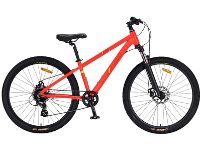 Горный велосипед для подростков с оборудованием начального любительского класса Shimano, 8 скоростей. Технические особенности: легкая алюминиевая рама (сплав 6061, частично скрытая проводка, кареточный стакан BSA, крепление калипера IS, съемный петух, бонки для багажника и флягодержателя), амортизационная вилка (пружинная, ход 60 мм, крепление калипера Post Mount, блокировка, регулировка преднагрузки), двойные алюминиевые обода (под AV ниппель), дисковые механические тормоза (роторы 160/160 мм), защита цепи, подножка, катафоты. Подходит для прогулочного катания в городских условиях и по несложным маршрутам в лесу. Диаметр колес - 26 дюймов. Вес - 13,5 кг.