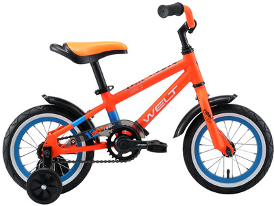 Велосипед, предназначенный для детей в возрасте от полутора до трех лет, без переключения передач. Технические особенности: стальная рама Hi-Ten, жесткая стальная вилка, одинарные алюминиевые обода, ножные педальные тормоза, защита цепи, съемные боковые колеса, багажник, мягкая накладка на руле, звонок. Подходит для обучения и легких прогулок. Диаметр колес - 12 дюймов. Вес - 8,3 кг.