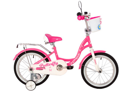 Велосипед, предназначенный для девочек в возрасте от трех до шести лет, без переключения передач. Технические особенности: стальная рама Hi-Ten, жесткая стальная вилка, одинарные алюминиевые обода, ножные педальные тормоза, полная защита цепи, съемные боковые колеса, стальные крылья, багажник, мягкая накладка на руле, передняя корзинка, звонок. Подходит для обучения и прогулочного катания в городских условиях. Диаметр колес - 16 дюймов. Вес - 11,35 кг.