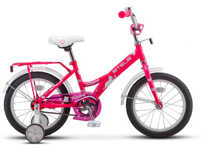 Велосипед, предназначенный для детей в возрасте от трех до шести лет, без переключения передач. Технические особенности: стальная рама Hi-Ten, жесткая стальная вилка, одинарные алюминиевые обода, ножные педальные тормоза, защита цепи, съемные боковые колеса, длинные крылья, багажник, поддерживающая ручка, мягкая накладка на руле, звонок. Подходит для обучения и легких прогулок. Диаметр колес - 16 дюймов. Вес - 11 кг.