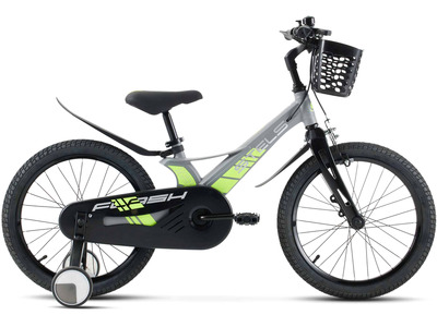 Велосипед, предназначенный для детей в возрасте от четырех до восьми лет, без переключения передач. Технические особенности: легкая рама из магниевого сплава (скрытая проводка), жесткая вилка из магниевого сплава (крепление калипера IS), одинарные стальные обода (под AV ниппель), передний тормоз - ободной клещевой, задний тормоз - барабанный (роллерный), полная защита цепи, пластиковые крылья, съемные боковые колеса, передняя корзинка, звонок. Подходит для обучения и прогулочного катания в городских условиях. Диаметр колес - 18 дюймов. Вес - 9,5 кг.