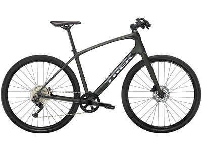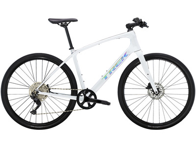 Дорожный велосипед гибридного типа с оборудованием профессионального класса Shimano, 11 скоростей. Технические особенности: карбоновая рама 400 series OCLV carbon, амортизационная вилка FX Carbon, двойные обода Bontrager Tubeless Ready Disc, дисковые гидравлические тормоза Shimano BR-MT201. Подходит для активной езды по различным дорогам и пересеченной местности. Диаметр колес - 28 дюймов. Вес - 9.55 кг.