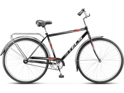 Дорожный велосипед начального уровня без переключения передач. Технические особенности: прочная стальная рама, жесткая стальная вилка, двойные алюминиевые обода, ножной педальный тормоз, защита цепи, длинные крылья, багажник, комфортное седло, звонок, катафоты. Подходит для прогулочной езды по шоссе и ровным проселочным дорогам. Диаметр колес - 28 дюймов. Вес - 17,47 кг.