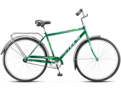 Дорожный велосипед начального уровня без переключения передач. Технические особенности: прочная стальная рама, жесткая вилка, двойные алюминиевые обода, ножные педальные тормоза, отличающиеся наибольшей простотой в использовании и надежностью, длинные крылья, защита цепи, багажник, звонок. Подходит для прогулочной езды по шоссе и ровным проселочным дорогам. Диаметр колес - 28 дюймов. Вес - 17 кг.