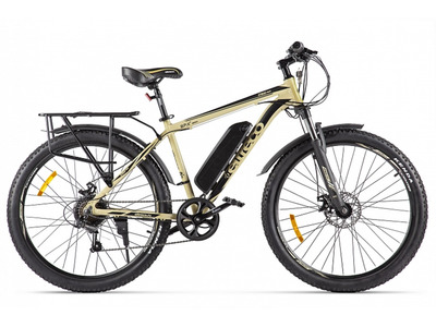 Спортивный электровелосипед с оборудованием начального класса Shimano, 7 скоростей. Технические особенности: алюминиевая рама, амортизационная вилка с ходом 80 мм, двойные алюминиевые обода, дисковые гидравлические тормоза Eltreco, электродвигатель 500W, аккумулятор Li-ion 36V/10Ah, LCD-велокомпьютер с 5 уровнями ассистента, пластиковые крылья, багажник, подножка, система освещения. Пробег на одной зарядке: до 50 км. Максимальная скорость: до 38 км/ч. Максимальная нагрузка - 110 кг. Подходит для активного катания в городских условиях и по несложным маршрутам в лесу. Диаметр колес - 27,5 дюймов. Вес - 21 кг.