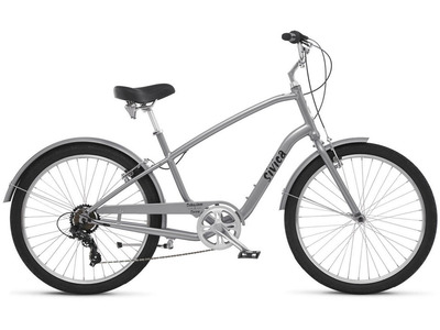 Комфортабельный круизер с оборудованием начального класса Shimano, 7 скоростей. Технические особенности: алюминиевая рама Schwinn Relaxed Position Plus, жесткая вилка Schwinn rigid, двойные алюминиевые обода Alex DC-26, надежные ободные тормоза Alloy linear-pull, защита цепи, длинные крылья, комфортное седло, подножка. Подходит для комфортного катания по паркам и городским улицам. Диаметр колес - 26 дюймов. Вес - 16,1 кг.