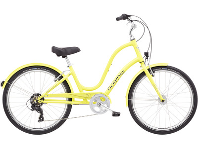 Комфортабельный круизер с оборудованием начального класса Shimano, 7 скоростей. Технические особенности: алюминиевая рама Townie 6061-T6, жесткая стальная вилка High-tensile steel unicrown, двойные обода, надежные механические ободные тормоза, защита цепи, комфортное седло. Подходит для комфортного катания по паркам и городским улицам. Диаметр колес - 26 дюймов. Вес - 14.97 кг.
