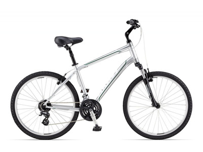 Комфортабельный велосипед начального уровня с оборудованием любительского класса Shimano, 24 скорости. Технические особенности: алюминиевая рама ALUXX-Grade Aluminum, амортизационная вилка SR Suntour NEX 4110, двойные обода Giant GX02, надежные ободные тормоза Alloy Direct Pull, регулируемый вынос, амортизированный подседельник. Подходит для комфортного катания по паркам, городским улицам и по маршрутам средней сложности в лесу. Диаметр колес - 28 дюймов. Вес - 15 кг.