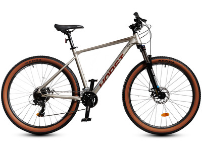 Хардтейл для езды в стиле кросс-кантри с оборудованием начального любительского класса Shimano, 8 скоростей. Технические особенности: легкая алюминиевая рама (сплав 6061, бесшовные сварные стыки, внутренняя проводка всех тросов, крепления и бонки для аксессуаров, кареточный стакан BSA, крепление калипера PM, рулевой стакан ZS), амортизационная вилка Grinz Hortus S (пружинно-эластомерная, ход 100 мм, блокировка, регулировка жесткости), двойные алюминиевые обода Qijian DA-18 (под AV ниппель), дисковые гидравлические тормоза Tektro HD-M275 (роторы 180/160 мм). Подходит для активной езды по различным дорогам и пересеченной местности. Диаметр колес - 27,5 дюймов. Вес - 14,1 кг.