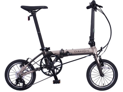 Складной велосипед для детей возрастом от трех до шести лет, без переключения передач. Технические особенности: складная алюминиевая рама (открытая проводка, прямой рулевой стакан, горизонтальные дропауты), жесткая стальная вилка (крепление под V-brake), двойные алюминиевые обода Dahon DRX16 double wall (под ниппель AV), надежные ободные тормоза Dahon WB-984DG V-brake (алюминиевые рычаги), катафоты, звонок. Подходит для обучения и прогулочного катания в городских условиях. Диаметр колес - 14 дюймов. Вес - 11,54 кг.