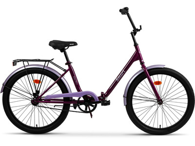 Складной прогулочный велосипед без переключения передач. Технические особенности: стальная рама Hi-Ten, жесткая стальная вилка, двойные алюминиевые обода, ножные педальные тормоза, багажник, защита цепи, звонок, крылья, подножка, катафоты. Подходит для прогулочного катания в городских условиях и по несложным маршрутам в лесу. Диаметр колес - 24 дюйма. Вес - 17,6 кг.