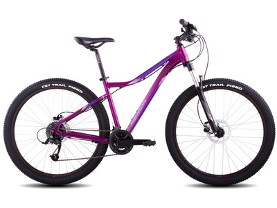 Женский горный велосипед для начинающих с оборудованием начального уровня Shimano Tourney, передний амортизатор RST Capa T9, 21 скорость, ободные механические тормоза, двойные обода ZAC19, WEINMANN, крылья пластик. Подходит для обучения и легких прогулок.