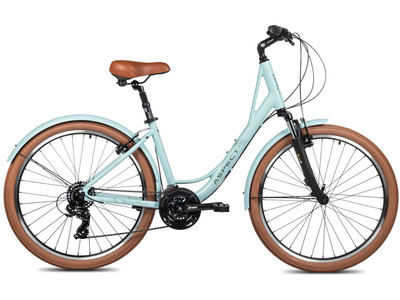 Женский дорожный велосипед с оборудованием начального класса Shimano, 7 скоростей. Технические особенности: стальная рама Hi-Ten, жесткая стальная вилка, двойные алюминиевые обода, надежные ободные тормоза V-типа, защита цепи, длинные крылья, багажник, звонок. Подходит для прогулочного катания в городских условиях и по несложным маршрутам в лесу. Диаметр колес - 28 дюймов. Вес - 18,33 кг.