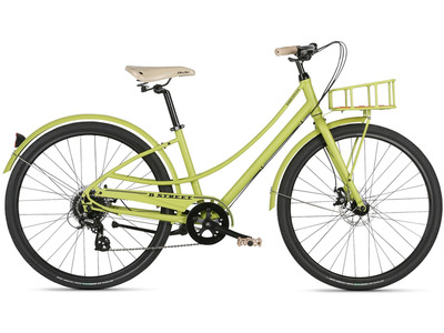 Женский велосипед начального уровня без переключения передач. Технические особенности: стальная рама Hi-Ten, жесткая стальная вилка, двойные алюминиевые обода, ножные педальные тормоза, длинные крылья, багажник, передняя корзина, насос, звонок. Подходит для прогулочной езды по шоссе и ровным проселочным дорогам. Диаметр колес - 28 дюймов. Вес - 18,7 кг.