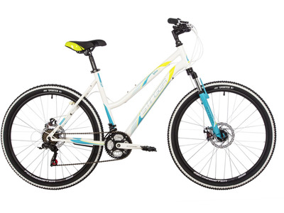 Женский горный велосипед для начинающих с оборудованием любительского уровня Shimano Acera, жесткая передняя вилка, 21 скорость, дисковые механические тормоза Promax, двойные обода ZAC19, WEINMANN, крылья пластик. Подходит для поездок по городским паркам, улицам и не сложным маршрутам в лесу. Диаметр колес-26 дюймов. Вес-15.3 кг.