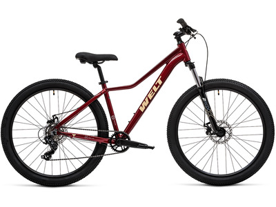 Женский горный велосипед с оборудованием начального класса Shimano, 7 скоростей. Технические особенности: легкая алюминиевая рама (сплав 6061, частично скрытая проводка, прямой рулевой стакан, кареточный стакан BSA, съемный петух, крепление калипера IS), амортизационная вилка 2ROXX 981 (пружинно-эластомерная, ход 100 мм, алюминиевые штаны, блокировка хода, регулировка преднагрузки, крепление калипера Post Mount), двойные алюминиевые обода (под AV ниппель), дисковые механические тормоза DX2005 (роторы 160/160 мм). Подходит для активной езды по различным дорогам и пересеченной местности. Диаметр колес - 27,5 дюймов. Вес - 14,85 кг.