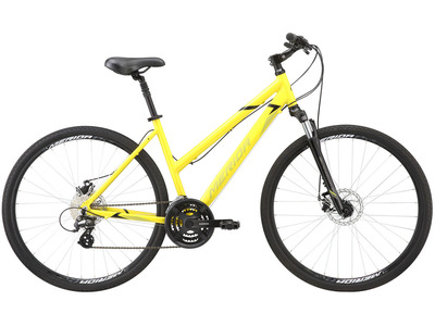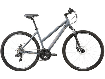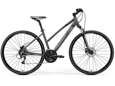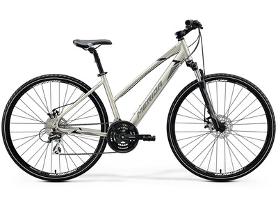 Женский велосипед гибридного типа с оборудованием любительского класса Shimano, 27 скоростей. Технические особенности: алюминиевая рама Crossway TFS L, амортизационная вилка Suntour NEX HLO с ходом 63 мм, двойные обода Merida Comp D, дисковые гидравлические тормоза Shimano MT-200, амортизированный подседельник, регулируемый вынос. Подходит для активной езды по различным дорогам и пересеченной местности. Диаметр колес - 28 дюймов. Вес - 14,13 кг.