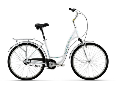 Женский прогулочный велосипед с оборудованием любительского класса Shimano, 21 скорость. Технические особенности: алюминиевая рама Alloy 6061, амортизационная вилка Spinner Odesa CR, двойные обода Weinmann, надежные ободные тормоза Promax TX-209. Подходит для комфортного катания по паркам и городским улицам. Диаметр колес - 26 дюймов. Вес - 15 кг.