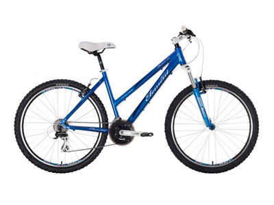 Женский горный велосипед с оборудованием любительского класса Shimano, 21 скорость. Технические особенности: прочная алюминиевая рама, амортизационная вилка SR SUNTOUR XCM, двойные обода WEINMANN, надежные ободные тормоза TEKTRO V-типа, пластиковые крылья. Подходит для активной езды по различным дорогам и пересеченной местности. Диаметр колес - 26 дюймов. Вес - 14,1 кг.