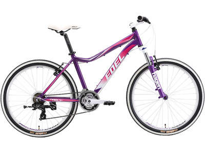 Женский горный велосипед с оборудованием начального класса Shimano, 21 скорость. Технические особенности: прочная алюминиевая рама, амортизационная вилка, двойные обода Qijian DH18 Alu, надежные ободные тормоза Power VBR-132S V-brake, подножка. Подходит для прогулочного катания по различным дорогам и пересеченной местности. Диаметр колес - 26 дюймов. Вес - 14,5 кг.